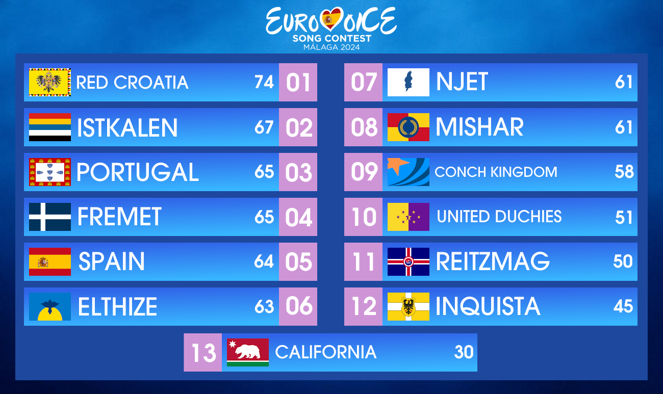 KC: Thank you, Françoise. (The crowd cheers, the noise increases...) So, if Elthize gets the 12 points, it's theirs! But if they do not, then the victory will go to Red Croatia... Please, tell us, who are your 12 points for?