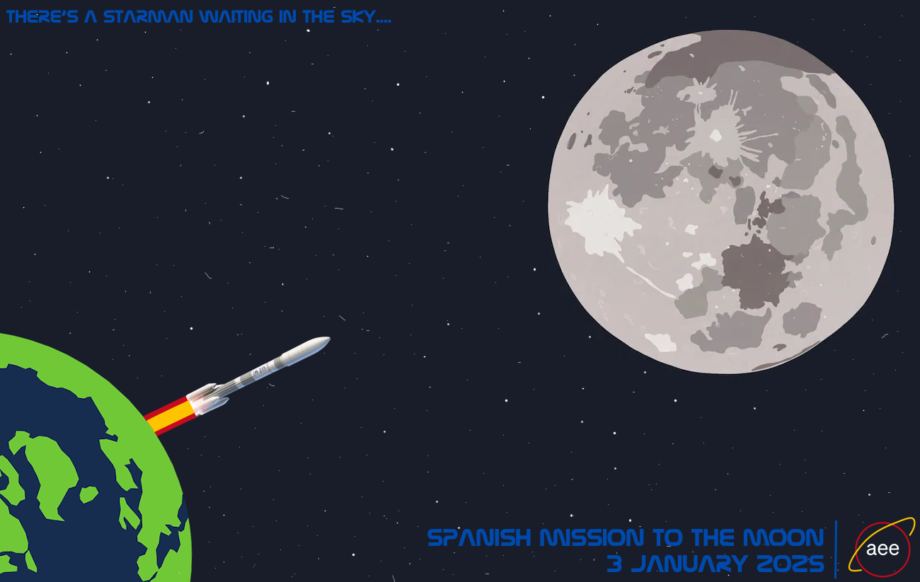 The Official Poster for the Spanish Mission to the MoonThe Spanish Government, the Ministry of Science, Innovation and Research and the Agencia Espacial Española - Spanish Space Agency (AEE - SSA) officially revealed today the poster for the Spanish Mission to the Moon, beginning on 3 January 2025. The Miura I will be launched from the Spaceport located in Sertia, at 05.00 Local Time. Their Majesties the King and the Queen, Her Royal Highness the Princess of Asturias, the President of the Spanish Government, the Minister for Foreign Affairs, European Union and Cooperation, the Minister of Science, Innovation and Research, the Spanish Councillor and Speaker of the European Council, the Secretary-General of the Spanish Commonwealth and Former Presidents Jean-Claude Juncker and Jesús Aguilar, will attend the launch on Sertia, travelling on 2 January 2025. General Carlos Brown and General Laura Potter will join them at Sertia, alonside Sertian and Nofoagan authorities, including the Head of the Braetha Fornithias Cranst, President Lula Namatatiki or the Spanish Representative in the Nofoagan Parliament, Marian Fonseca; amongst other authorities.